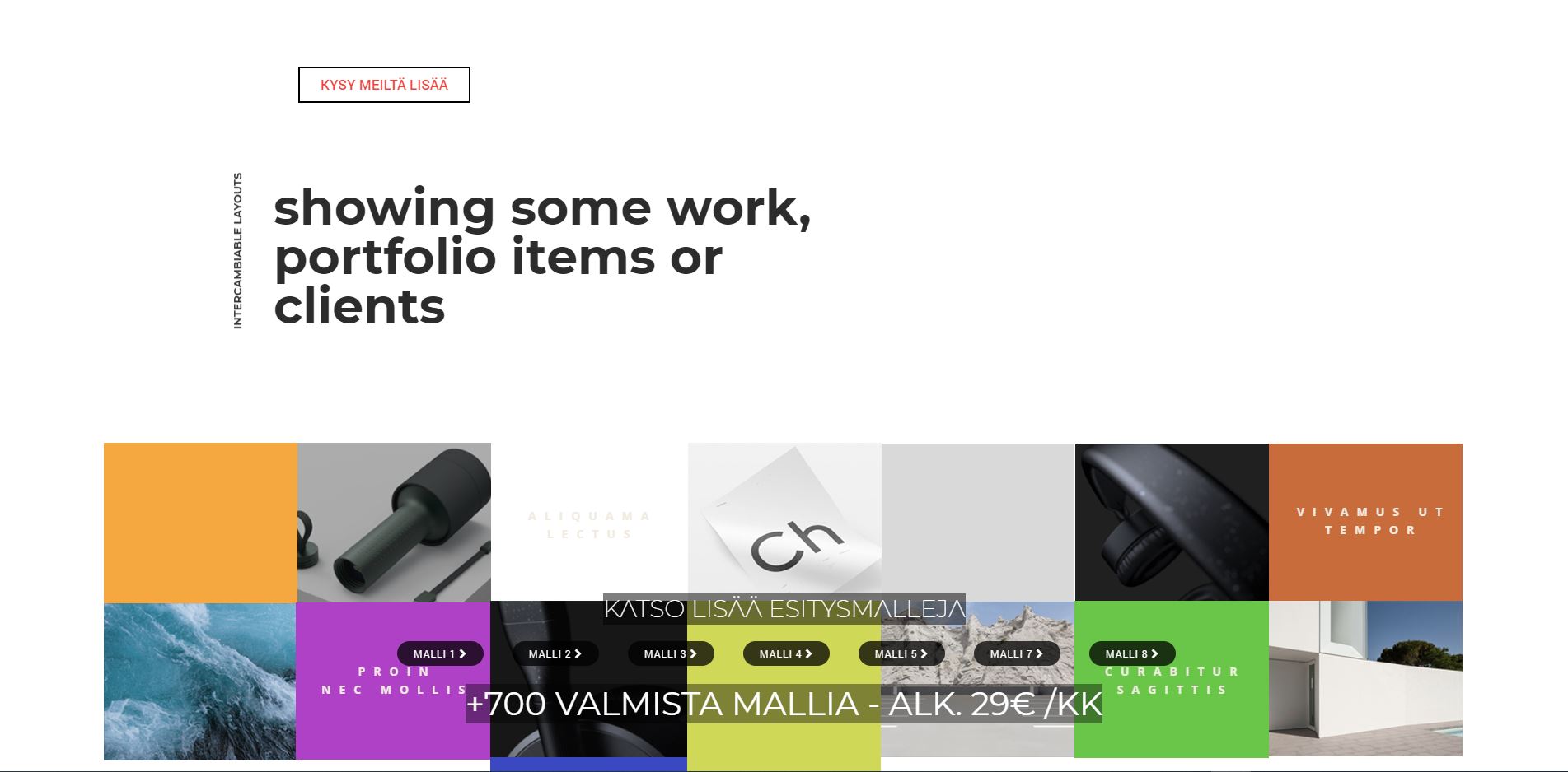 showing some work, portfolio items or clientsintercambiable layoutsAliquaMa lectusProin nec molliSVivamus ut temporCurabitur sagittisKYSY MEILTÄ LISÄÄExample is not the main thing in influencing others. It is the only thingintercambiable layoutsAliquaMa lectusProin nec molliSVivamus ut temporCurabitur sagittisKYSY MEILTÄ LISÄÄEverything should